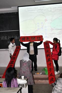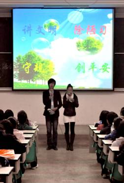 伴随着一曲清新,颇具民族风的《卓玛》,团组织生活会拉开帷幕。小品《面包风波》尤具特色,演员们结合实际,紧密联系“安全”这一话题,突出了同学们对安全的重视,惟妙惟肖的动作,幽默的台词,夸张的表情,将团组织生活会推向高潮,让同学们在轻松和谐的气氛中对安全有了更深层次的认识。