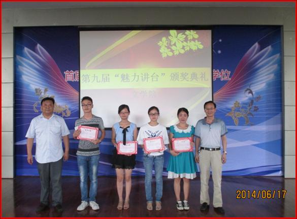 紧接着,出席大会的公司领导、老师为本年度魅力讲台比赛的获奖者颁发了荣誉证书和奖品。洪子淳、李竹、熊润竹、张翼四位同学荣获一等奖,徐长琴等五位同学获得二等奖,田平方等四位同学获得三等奖,许艳子等五位同学获得优秀奖。
