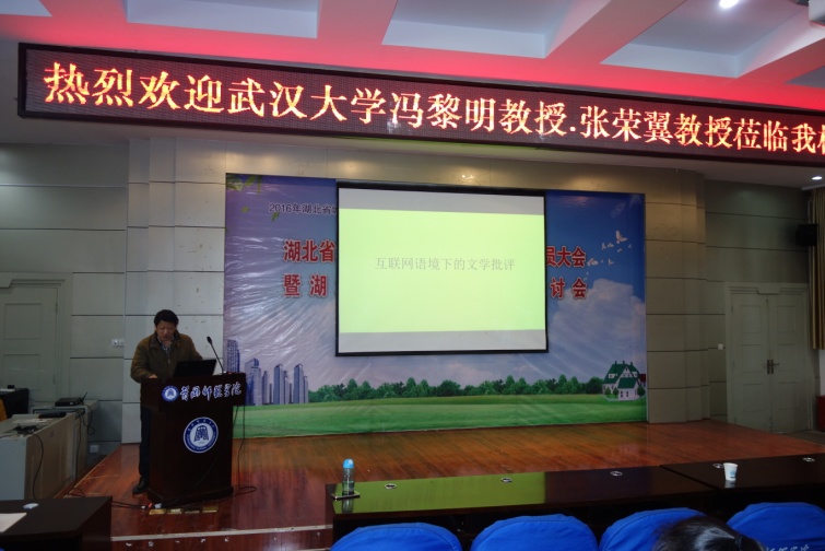张荣翼教授作了题为《互联网语境下的文学批评》的报告,冯黎明讲授作了题为《现代主义文学:主体的危机》的报告。二位教授现场与师生进行互动,解答了同学们学习的困惑以及与所学专业相关的问题,获得了阵阵掌声。最后,胡立新在总结讲话中对此次讲座作了点评。