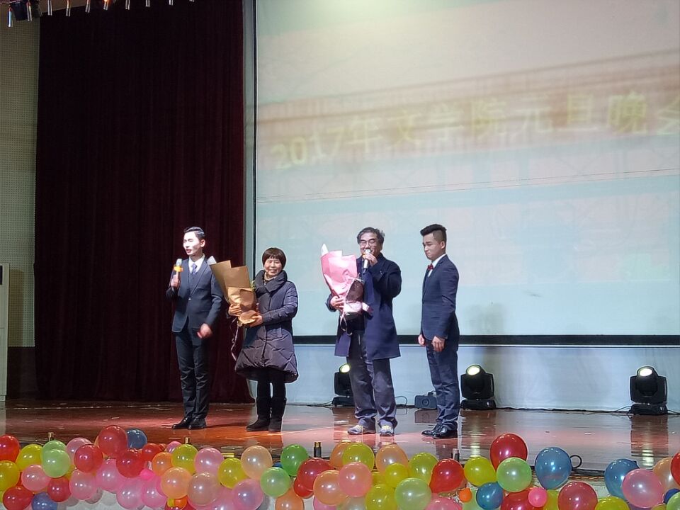 即将退休的夏元明、谢岚岚教授分别对同学们寄予了殷切的希望和元旦祝福。谢教授深情地说“虽然把青春献给了教育,但不后悔”,甘当人梯的真情表述触动了现场每一个人的心房;夏教授祝老师们节日快乐,工作顺利,祝同学们在新的一年里学业有成,不断进步。在场师生以经久不息的掌声向两位教授表达了真诚的敬意。