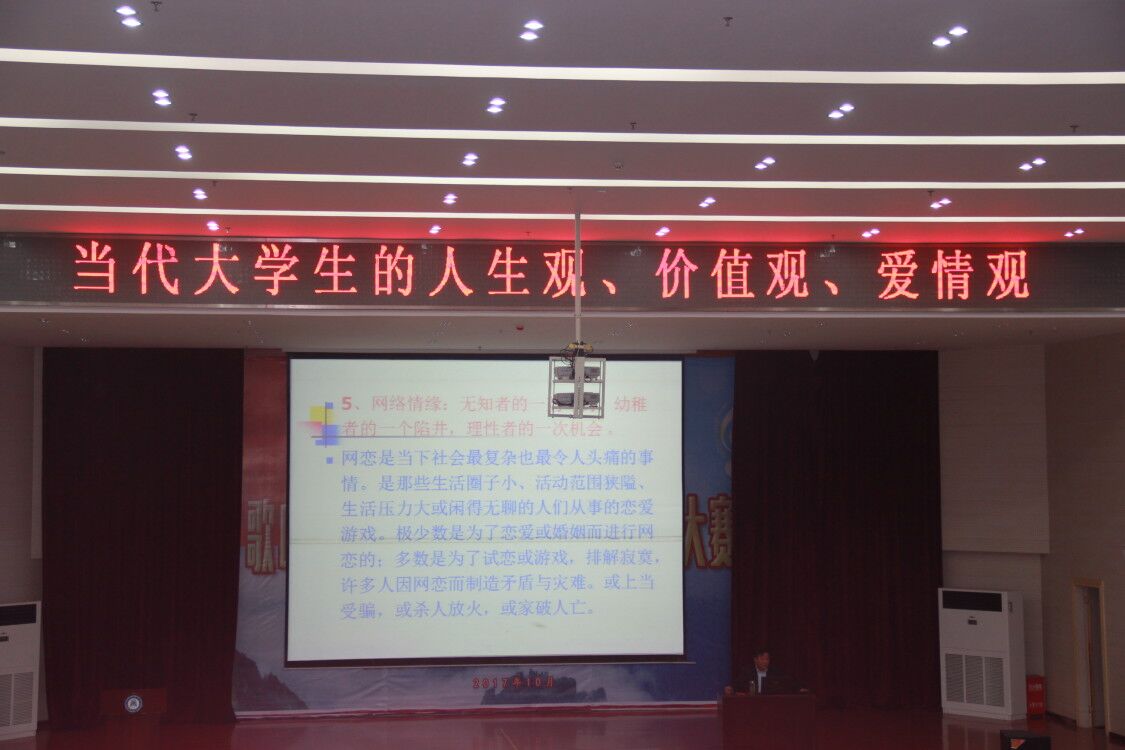 根据2017级新生入学教育安排,为加强公司新生的思想政治教育,帮助他们树立正确的人生观、价值观、爱情观,10月25日晚,william威廉亚洲经理胡立新教授应邀在厚德楼学术报告厅举行了“当代老员工如何正确树立人生观、价值观、爱情观”的讲座。william威廉亚洲辅导员、2017级班主任及全体大一新生聆听了本次讲座。讲座由公司党政办公室主任李娟主持。