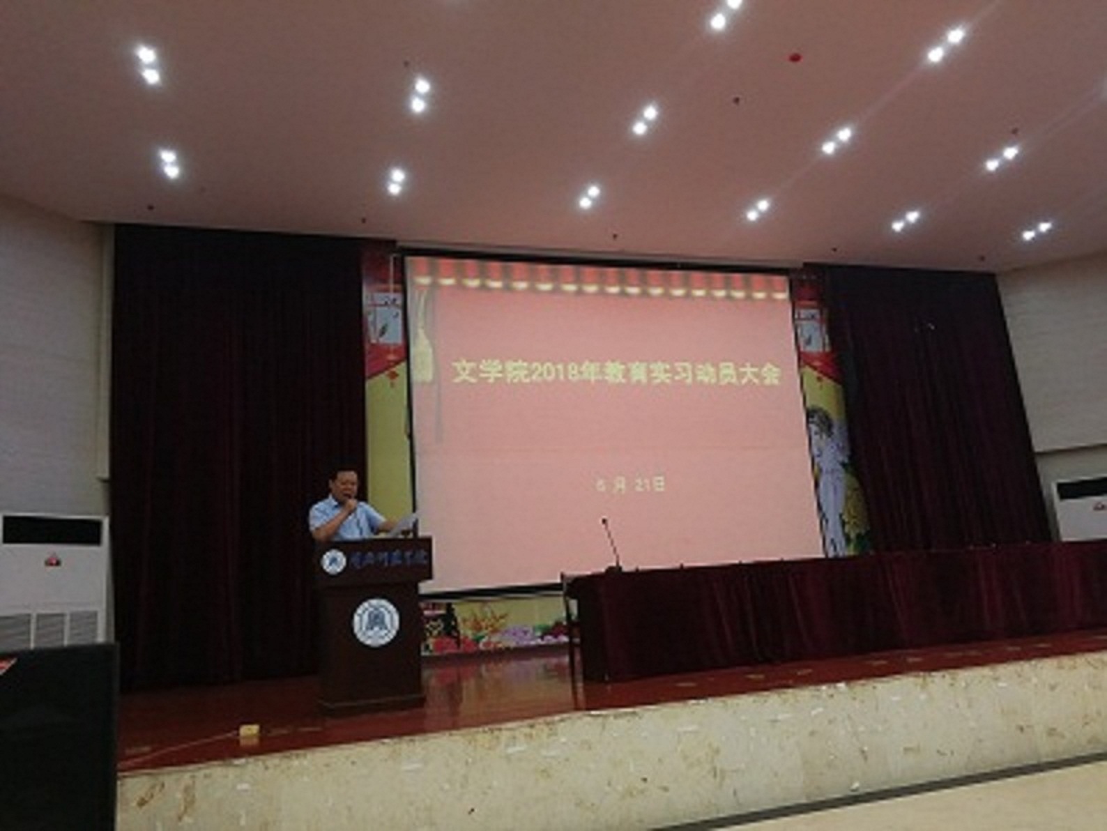 胡立新作了热情洋溢的动员讲话,介绍了教育实习目的、方式、任务,解答了同学们的一些思想疑虑,指出教育实习是实施教学计划的重要步骤。他要求同学们端正实习态度和思想认识,要有吃苦耐劳的工作精神,在教育实习中积极培自己的创新实践能力以及人际交往能力,不断完善和成就自己。