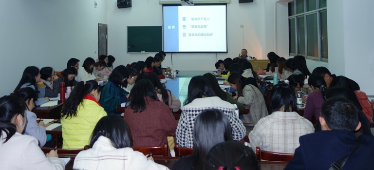 朱教授提到古代社会有两种是非观:天子的是非观和孔子的是非观,尤其是孔子的是非观,深刻影响了古代大多数知识分子的世界观和价值判断,然而也有李贽这样的自由思想家拥有自己的是非观。他首先征引司马迁、班固等史家著述,肯定李贽“是非谬于圣人”并非无据。其次,以“是非无定质”为中心,阐释这一思想对庄子“相对主义”之间的继承与发展。其三,以王阳明、王艮、黄宗羲等明代学人学案为支撑,条分缕析地解读了李贽是非观的丰富内涵。在对话交流环节,朱教授和蔼而细致地剖析了李贽的“女性观”和他的“童心说”,认为这同样体现了他进步的是非观。朱教授打通文史哲的学人风范、深入浅出的大家气场征服了在场所有师生,致远楼517不时响起热烈的掌声。
