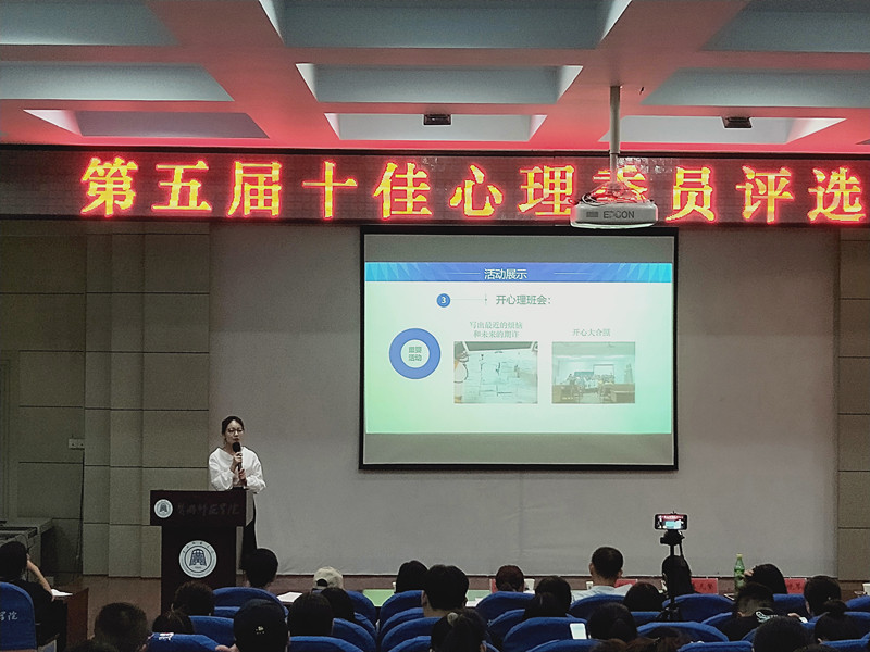 此次比赛有十五个公司的选手入围决赛,每位心理委员代表都依次生动地展现了自己担任心理委员的经历,就如何做好心理委员工作和今后的工作规划谈自己的想法。公司文学1707班刘畅同学在第一环节通过班级活动展示谈工作心得体会,在第二个问答环节她沉着冷静回答,最终以91.8的高分荣获第五届“十佳心理委员”的称号。