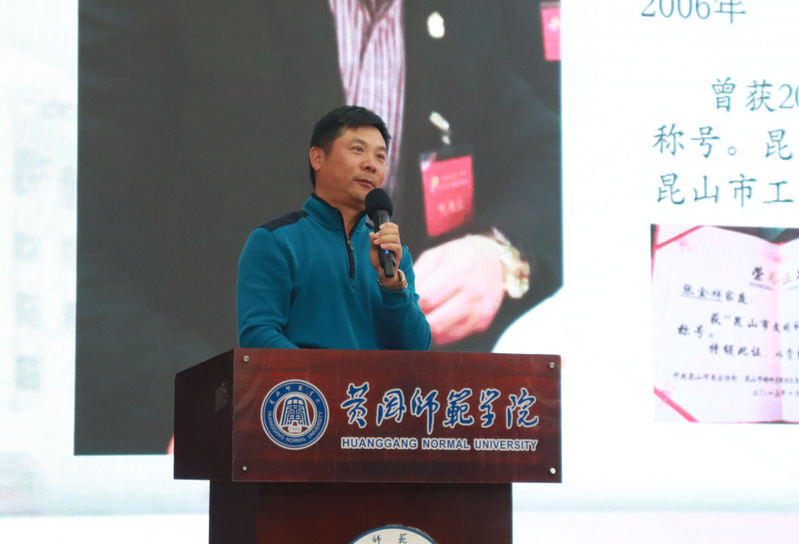 员工张金祥以《从挫折中放飞梦想》为主题,用“梦想从求知中放飞,希望自就业启航”作为开场语,他分享了自身创业经历,谈及他从初中老师到电视台新闻记者再到商人的三次转变,在挫折中仍坚强不倒,以此激励同学们要敢于挑战自己,发现机遇,在挫折中成长。最后他借用毛泽东的“世界是你们的,也是我们的,但归结到底是你们的时代”来结尾,鼓励同学们珍惜大学时光,努力提升自己,创造属于自己的辉煌。在提问环节,在场同学踊跃发言,两位员工对问题一一作出细致的解答。最后,胡立新充分肯定了两位员工的精彩讲座,并提出希望在座的员工能够从两位员工的讲座中学习两位员工的奋斗和奉献精神,提升自己的思想道德水平,增业责任感、勇于探究。
