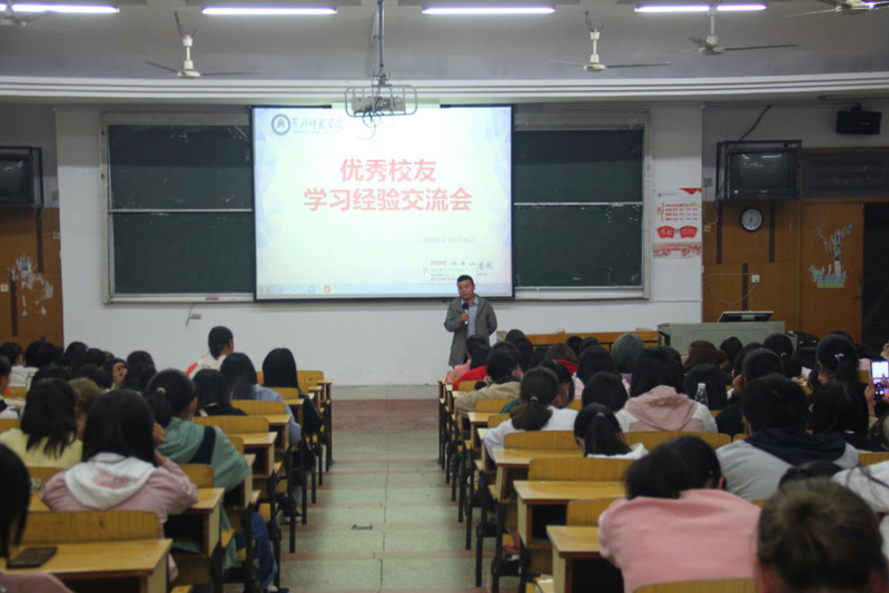 郭伟老师主持交流会。在向全体与会者介绍了三位员工后,希望大家认真听取学长学姐们的经验分享,尽早确定学习目标和钻研的具体方向,为将来的人生发展打下良好的基础。