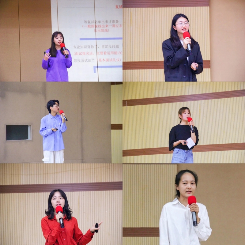 刘奇源重点讲解了择校与择专业,制定备考计划,如何看待跨考等问题。程若男主要分享了考研政治的学习方法和学习心得,她建议同学们政治要注重理解。商娟着重讲解了考研英语的学习方法和记忆方法。郭双在学科语文各科备考经验和备考的心理问题上分享了自己亲身经验。刘力在学科语文专业课的复习上颇有心得,他向同学讲解了滚轮式背诵方法,叮嘱同学们一定要注重背诵。姚宁向在场同学分享了考研和考公的经验,她提出考公对于应届毕业生是个难得的机会,要协调好考研和考公的时间,把握好时机。