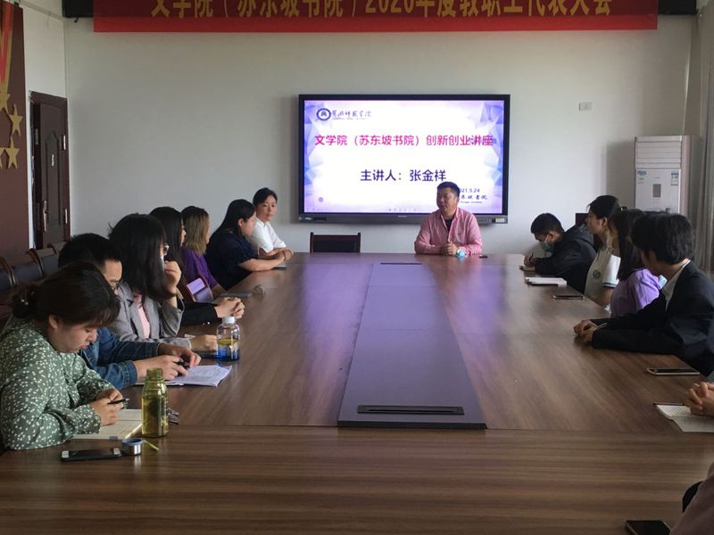 5月25日上午,公司“东坡爱心基金”发起人之一张金祥为员工做创新创业讲座。公司有创业意向和已经在创业的员工参加讲座。讲座由副书记王艳艳主持。