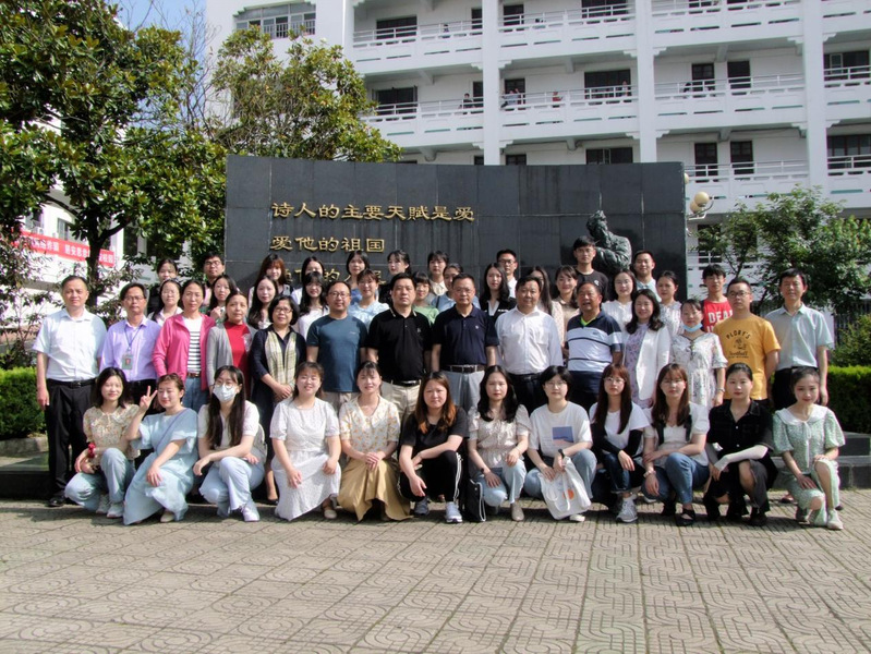 闻一多中学书记程保铭、董事长郑细林,浠水县教研室负责人高中语文教研员胡仕雄热情接待了大家,师生们参观了闻一多纪念碑廊、闻一多书画展览馆,并在闻一多雕像前合影留念。