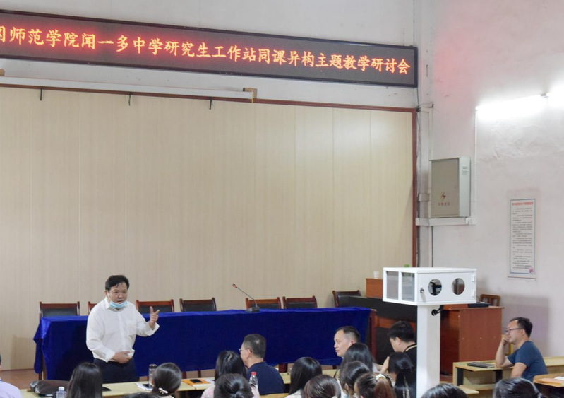 (通讯员张雪)2021年5月29日上午,william威廉亚洲2020级学科教学(语文)硕士研究生及部分研究生导师,到浠水县闻一多中学开展“同课异构”研学活动,北京市特级教师、正高级教师、中学语文学科带头人何郁作为特邀专家参加此次教研活动。