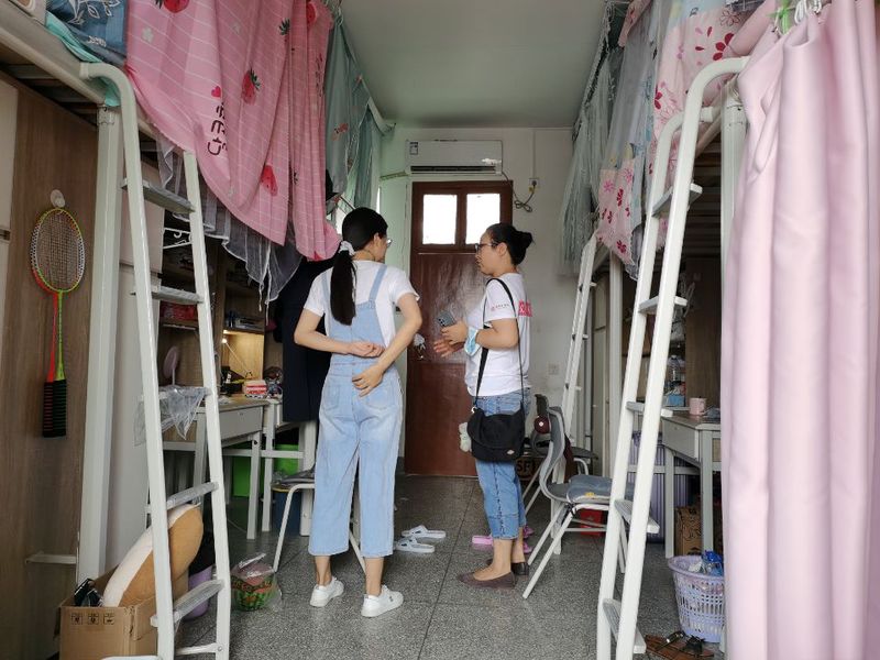 在看望毕业生的同时,公司还安排辅导员老师协同本院宿舍文化部同学开展节假日例行的宿舍安全隐患排查,对端午假期同学们的去向进行了了解,提醒同学们在外提高疫情防控意识,关注人身及财产安全。