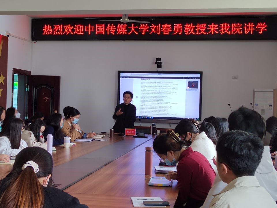 刘春勇教授的本次讲座主题为“全球史与区域史视域下的中国‘新文科’建设——以中国传媒大学中国文学学科2021级博士生基础文献为例”。刘教授首先对中国传媒大学博士研究生应阅读的基础文献进行了总体介绍,向同学们分享了《中国传媒大学2021级博士培养方案》中一级学科的必读书目和基础文献,他提出,既要在阅读中有形成理论体系的思维,还要打破文科与理工科的界限,在文学类必读书目中加入科技类、经济类等跨学科阅读书目,响应“新文科”建设的号召。其次,他还分享了“打破三个中心,一个确立”的观点。“三个中心”指的是西方中心、汉文化中心及纸媒中心。“一个确立”指的是确立问题意识。他以中国传媒大学2021级博士生基础文献为例,运用全球史及区域史的思维对历史事件进行了全新角度的分析,对参加讲座的师生进行了新思维的启迪。在互动环节,刘春勇教授对同学们提出的一系列问题给予了专业耐心的解答。