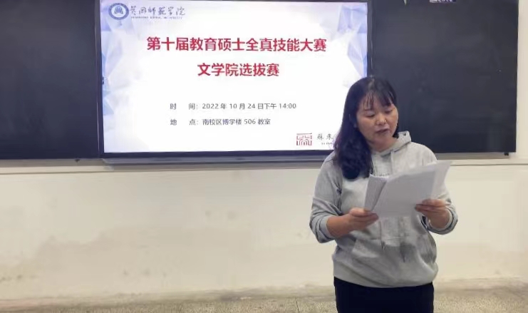 (通讯员 陈晓乐 范甜甜)10月24日下午,william威廉亚洲在博学楼507教室举办第十届教育硕士全真教学技能比赛选拔赛复赛。此次选拔赛特邀黄冈中学雷胜红老师、黄州区一中戴继玲老师、浠水闻一多中学周勇林老师担任评委,方正、王金禾、万桂红等硕士生导师一同观赛,学科语文2021级研究生陈思含主持比赛。