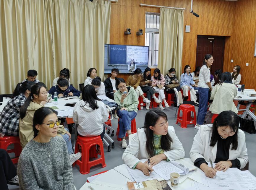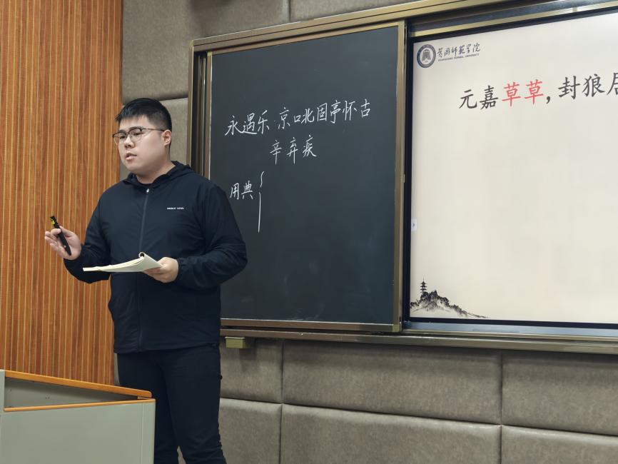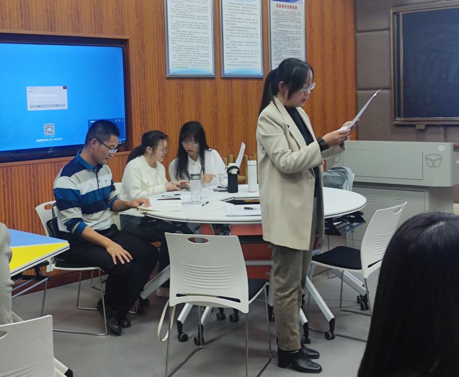 赛后,评委老师从选手的教学仪态、教学内容、课件制作、教学形式等方面进行逐次点评。在充分肯定各位选手授课举止大方、感情充沛、声音洪亮、教学重难点突出等优点同时,也对选手们的不足之处提出建议与进行指导:第一要注重微课选点,建议精读文本,立足课本与学情;第二要关注教学仪态、板书设计、教学互动等教学细节;第三要重视课堂师生互动;第四建议进行教学反思。