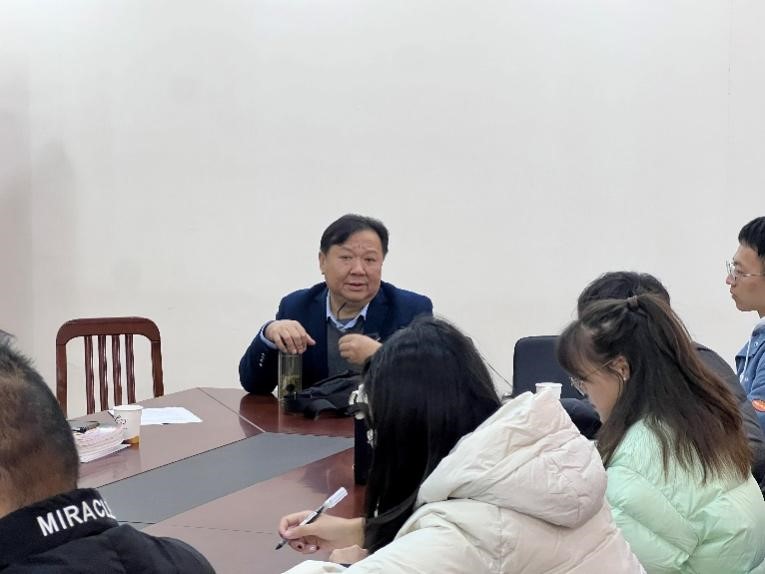 胡立新教授首先对黄梅一中的周到准备表示感谢,感谢他们给予公司研究生一次珍贵的学习机会。其次,他表示本次示范课教学效果良好,是一次富有创意的好课,但仍需进一步打磨和完善,将课程思政落到实处。最后,胡教授勉励各位研究生以此次活动为契机,掌握写作教学的要点,学会评课,不断提升自身教学水平。