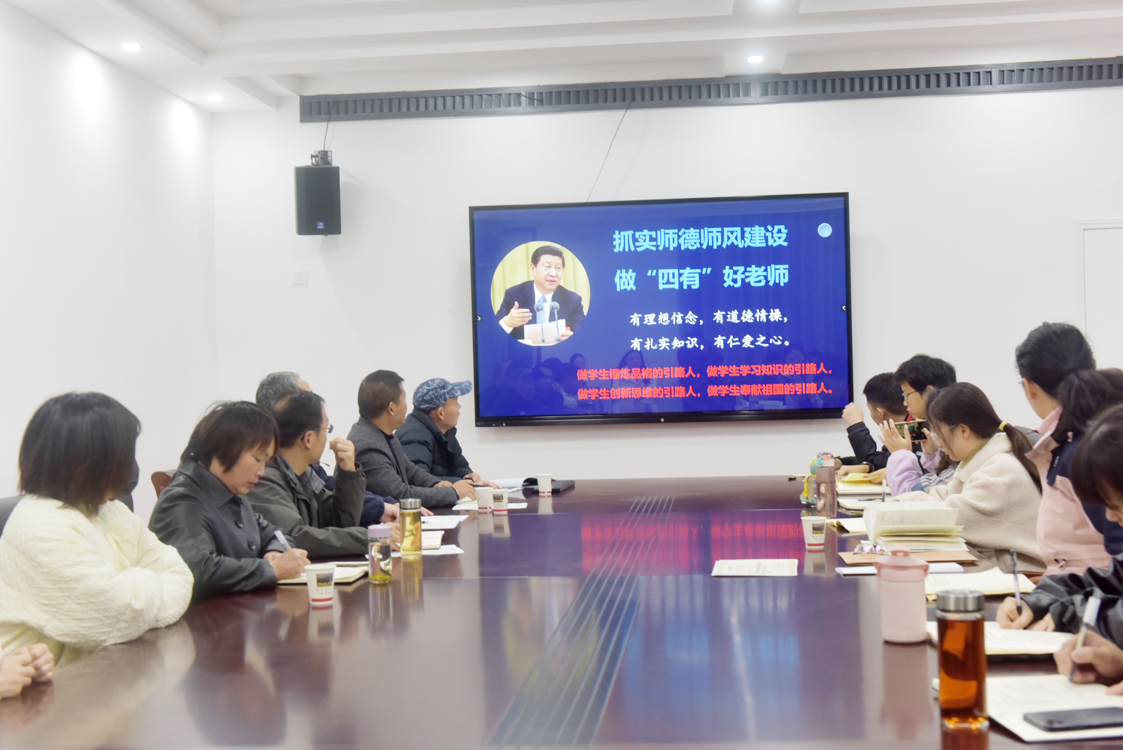 闻一多中学副董事长饶水平老师首先报告师德教育背景:一是新时代习近平总书记对师德提出了新要求,对师范生的思想政治工作做出了全方位部署和规划,广大师范生都需要践行的崇高准则;二是良好的师德师风是教师的必备素质,做一个师德高尚的老师是每一位实习生的内在要求。其次,饶董事长为实习生详细解答了中小学教师职业道德的具体内容,要求实习生从六个方面严于律己,全方面提升师德修养,做新时代的好老师。