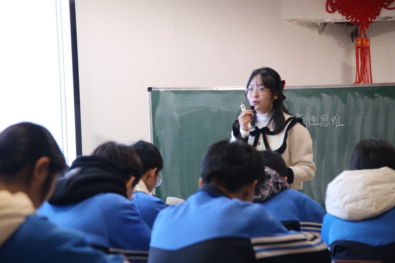 会议第二项,由武穴市实验中学骨干教师邹继承与公司22级学科教学(语文)研究生刘佩如对《谈创造性思维》一文进行同课异构,两位老师从不同的侧重点展开授课,共同指向员工思维能力的发展与提升。