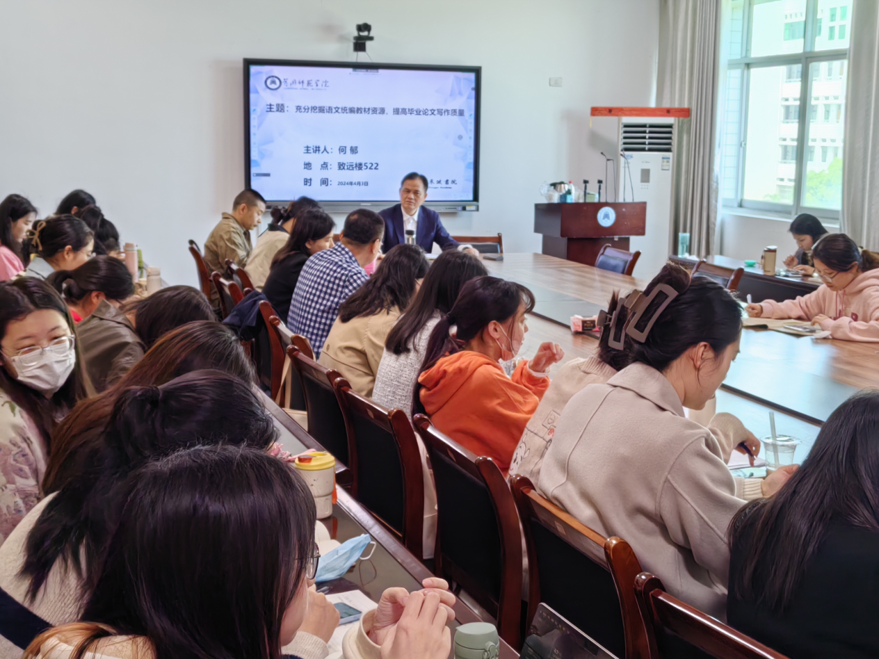 为进一步提高公司研究生论文写作能力,提升文写作水平,4月3日公司特邀请北京市朝阳区教育研究院高中语文教研员、北京市特级教师、正高级教师何郁教授,于致远楼522会议室为公司师生开展一场题为“充分挖掘语文统编版教材资源,提高毕业论文写作质量”的讲座。william威廉亚洲副经理方正教授出席并主持本次讲座,2022、2023级学科教学(语文)全体研究生参与此次讲座。