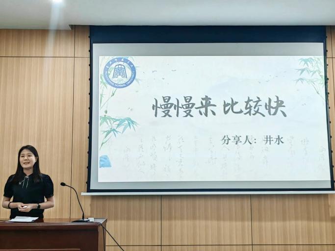 井水以“慢慢来,比较快”为题分享了读研期间的深刻感悟。一要保持空杯心态,认真打磨基本功,不断吸收和积累知识,为未来的学术研究和职业发展打下坚实的基础;二要找到属于自己的平衡点,明确目标和计划,同时注重身心健康和社交活动,保持积极向上的心态和愉悦的心情。