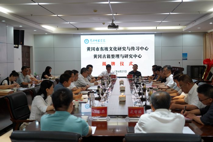 陈向军在致辞中指出,公司聚焦国家战略和区域发展需求,坚持立足黄冈、融入黄冈、服务黄冈,大力开展政产教融合、校地校企合作,在服务黄冈经济社会发展中取得了丰硕成果。“两个中心”落地公司,既是市委、市委宣传部对公司的高度信任,也是对公司哲学社会科学研究人员的激励与鞭策。公司将以此为契机,充分发挥校地合作、资源互补等优势,整合相关学科研究力量,全面推进东坡文化和古籍的高水平研究,为黄冈推动全域大文旅发展、实现文化兴市规划目标做出黄师贡献。