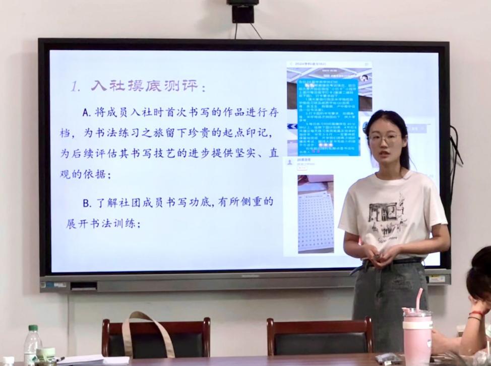 点墨书法社旨在引领同学们深入“三笔字”的练习,为日后提升教师技能素养奠定坚实的基础。活动中,学姐从社团的详细介绍、过往成果的精彩展示,以及日常练习打卡的详细规则等三个方面,为同学们进行了全面讲解,获得了同学们的热烈反响与积极参与。