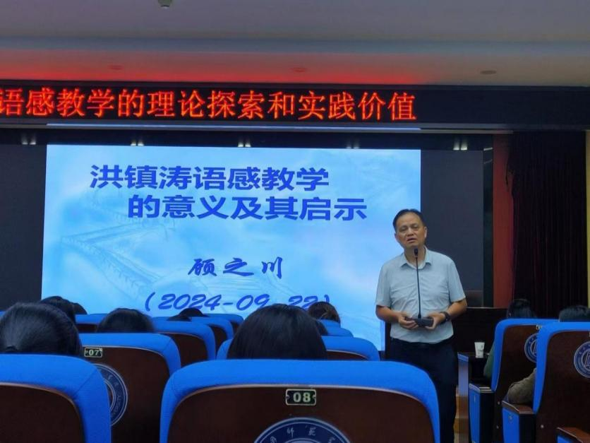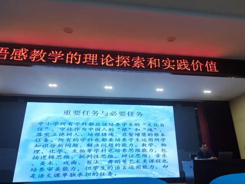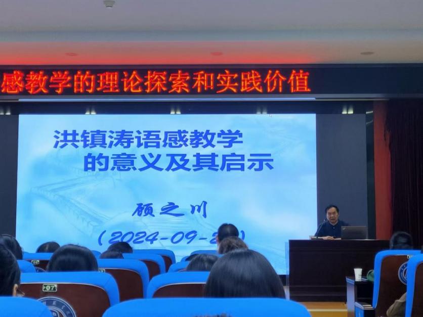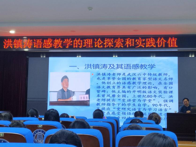 讲座中,顾老师首先以语文教材中的黄冈元素为切入点,阐释洪镇涛语感教学理论产生的地域文化背景,强调语文学习的要以语言为本体,以员工为主体,以语感训练为主要教学手段,从而不断提高理解和运用国家通用语言文字的能力。