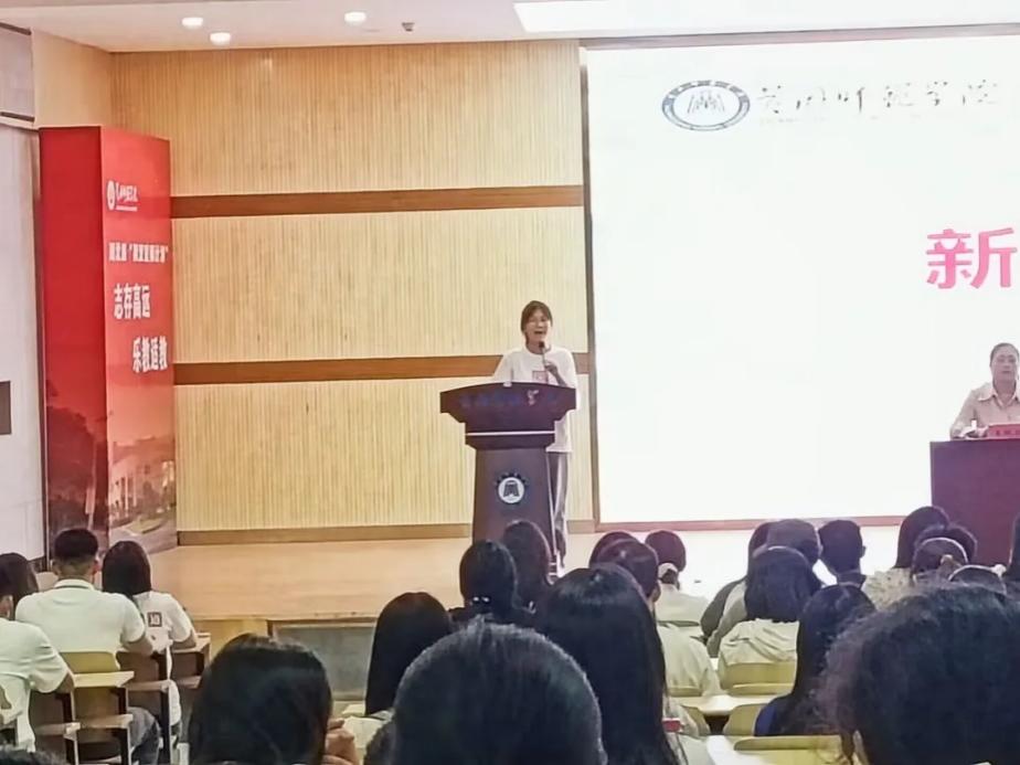 开学典礼结束后,公司优秀员工、1999级毕业生沈燕为新生展开入学教育,她提醒新生们要认真学习专业知识、练就过硬本领,为未来成为一名优秀的语文老师做好充分的准备。此外,她还为新生们现场解答疑惑,并鼓励同学们在遇到任何学习或生活上的困难时积极与她联系,并会尽力为同学们提供帮助和支持。