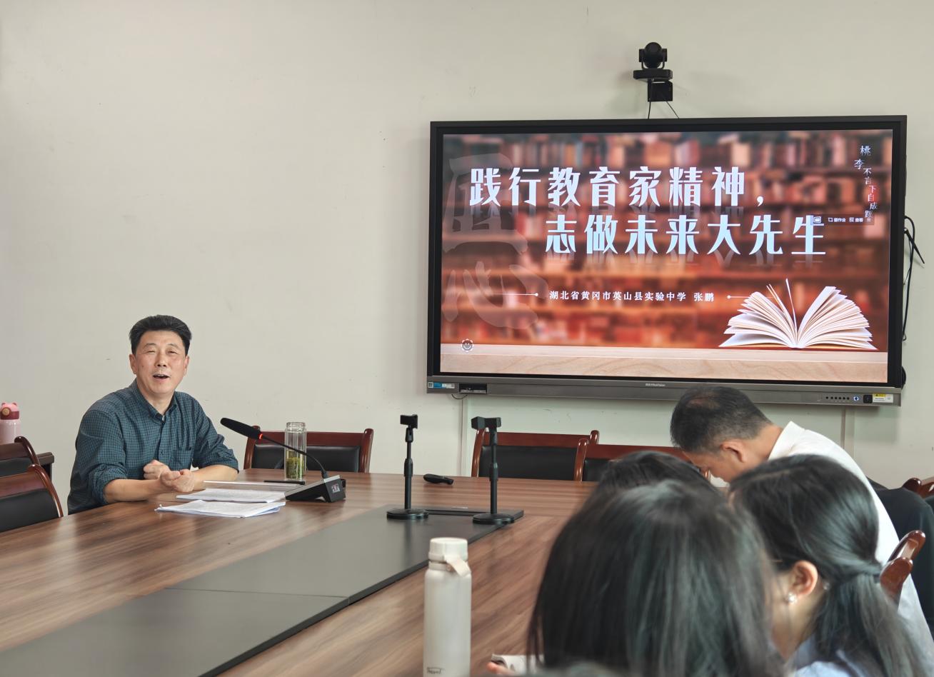 师者,以德而耕,桃李满天下。张老师提出,新时代的“大先生”不仅体现在学问上,还体现在大的格局和胸怀上。随后,他从“明道”“筑路”“追梦”三个角度出发阐明“大先生”的时代内涵,他鼓励大家要努力让课堂变得厚重一些,以传授知识、启迪智慧、完善人格为课堂目标,还要让自身变得大气一点,摆脱死板教书的“匠气”,提高科学施教能力和自身人文素养。