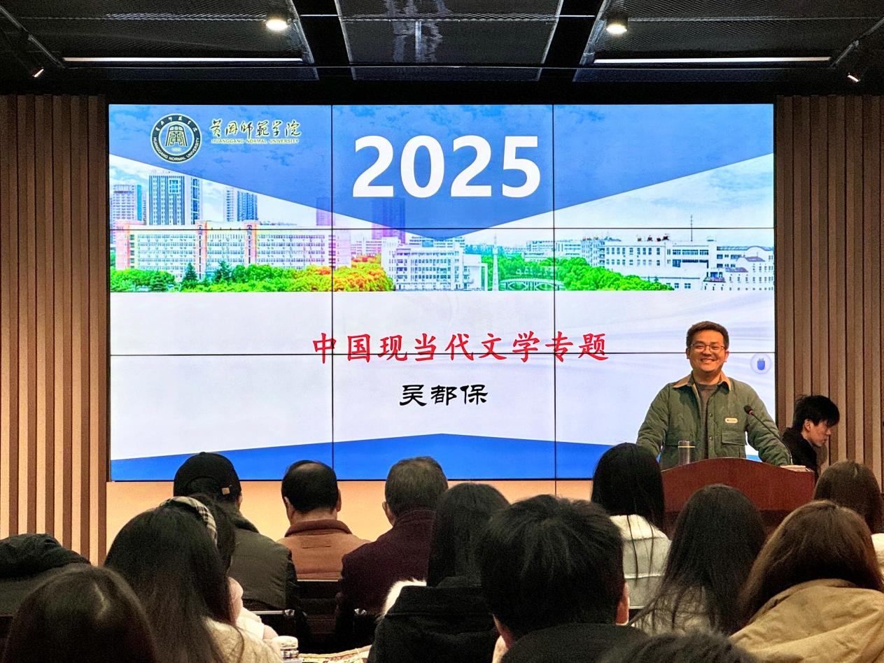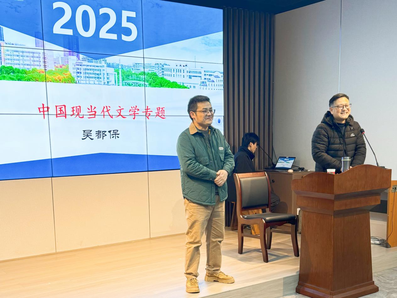 随后,吴都保博士作学术分享。他首先解析了“现代文学”与“文学的现代化”的核心内涵,通过政治、经济、社会、文化四维分析框架,深度剖析文学现代化的动态特征。吴都保教授强调:“文学研究者必须立足文学现场,重构历史语境,才能实现教学设计的学术突破。”他提出的“文学即人学”这一核心观点,引发在场听众强烈共鸣。
