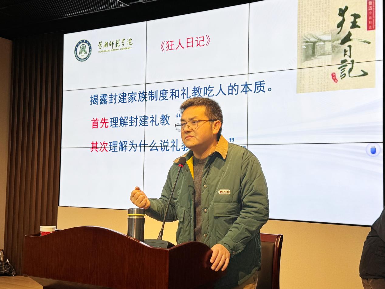 会议进程中,吴都保博士指出“鲁迅最大魅力是对人心灵的征服”。他以鲁迅《狂人日记》为研究范本,从“提出”“深化”“反思”三个维度,论证“吃人”意象在历史、文献中的多重指涉,揭示鲁迅批判精神的科学根基,并现场演示文学解读向教学能力转化的实践路径,提升研究生夯实文本解读基本功。