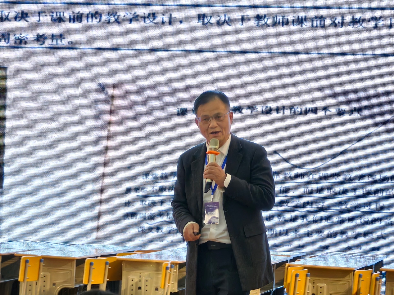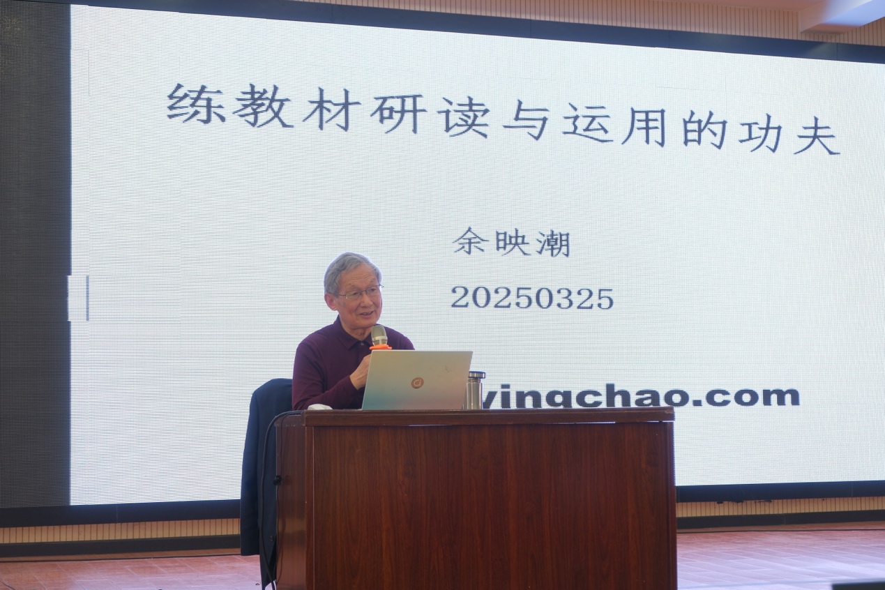 3月25日下午,全国语文特级教师余映潮开展了一场主题为《例谈语文教材的精致研读与利用》的专题讲座,为与会教师带来了一场兼具理论高度与时间深度的专业分享。在历时两个小时的讲座中,余映潮老师系统阐述了构建高效阅读教学体系的六大核心维度:语言学用实践、阅读技能训练、语文知识积累、集体活动组织、审美素养培育以及教学目标定位。此外,余老师特别强调,新时代的语文教师应把握两个关键维度:一是持续深化专业学识修养,二是切实锤炼课堂教学基本功。整场讲座理论体系严谨、经验分享详实,“教研相长”的专业发展理念,为语文教学改革的深入推进提供了极具参考价值的实践路径。