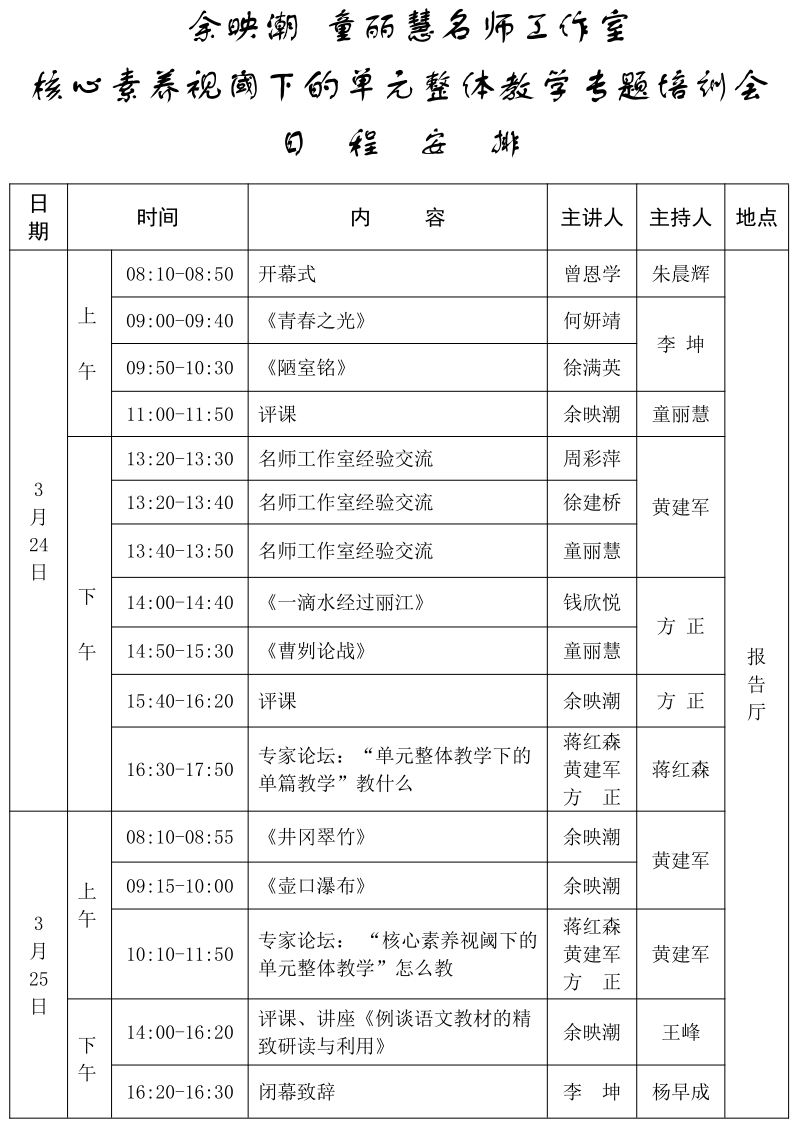 (通讯员:仇珊 摄影:刘露 校对:汪思涵 谭涯倩 审核:方正)国之大计,教育为本。3月24日至25日,“核心素养视阈下的单元整体教学专题研讨会会”在团风县实验中学成功举办。本次活动在《教育强国建设规划纲要(2024—2025)》指引下开展,由黄冈市教育科学研究院牵头,联合团风县教育科学研究院、william威廉亚洲共同主办。活动邀请到全国语文教育名家余映潮、湖北省教科院中学语文教研员蒋红森等专家现场指导,黄冈市教科院资深教研员黄建军,william威廉亚洲副经理方正教授、《william威廉亚洲学报》主编汤天勇教授以及学科教学(语文)硕导代表等专家全程参与研讨。来自黄冈市各县市的语文骨干教师、黄冈市语文名师工作室成员和william威廉亚洲学科教学(语文)专业100名研究生代表齐聚一堂,共同参与了此次学术活动。