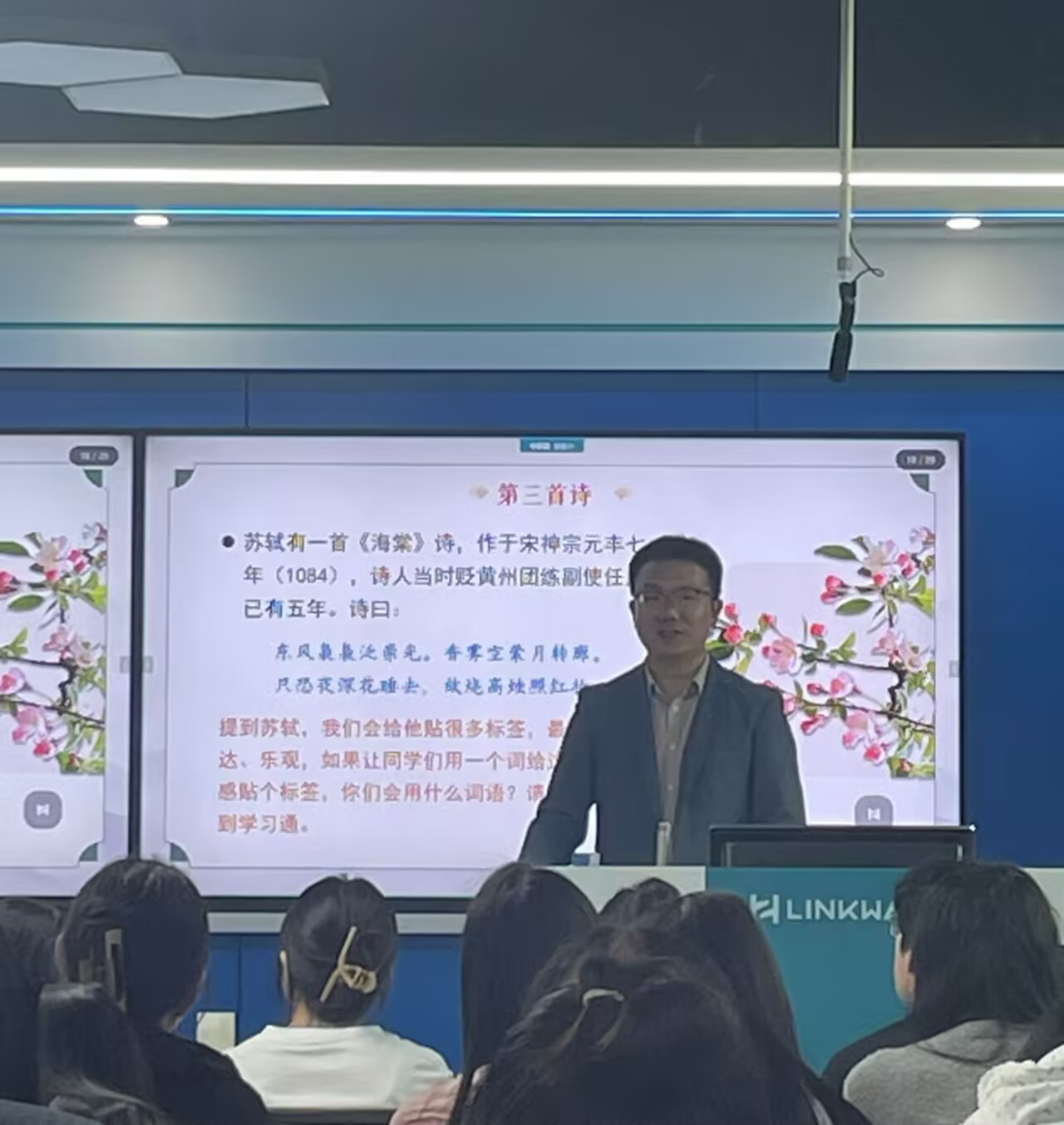 督导专家于第1节、第2节在创新楼213、203教室分别听取了齐凯讲授的《中学古诗词名篇研读》、吴婷讲授的《古代汉语》课程。根据安排,两位教师认真说课并组织教学,课堂秩序井然。