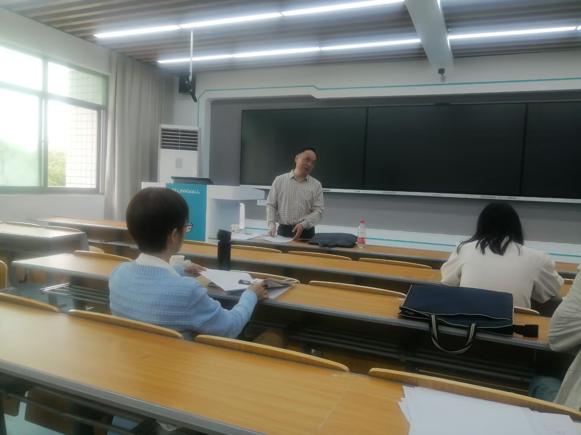 听课结束后,评课环节在301教室进行。现场督导专家充分点评了两位青年教师的讲课内容与教学特点,尤其对齐凯老师灵活借助AI辅助课堂教学给予了肯定,认为这是未来教学创新的方向。