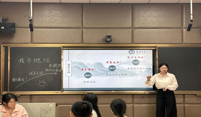 三号选手杨寅从《故都的秋》中的“秋雨”和“闲人”入手,将文本细读与作家生平、时代背景深度勾连,帮助员工构建起“景物—情思—境界”的审美阶梯,解读郁达夫笔下独特的秋味。