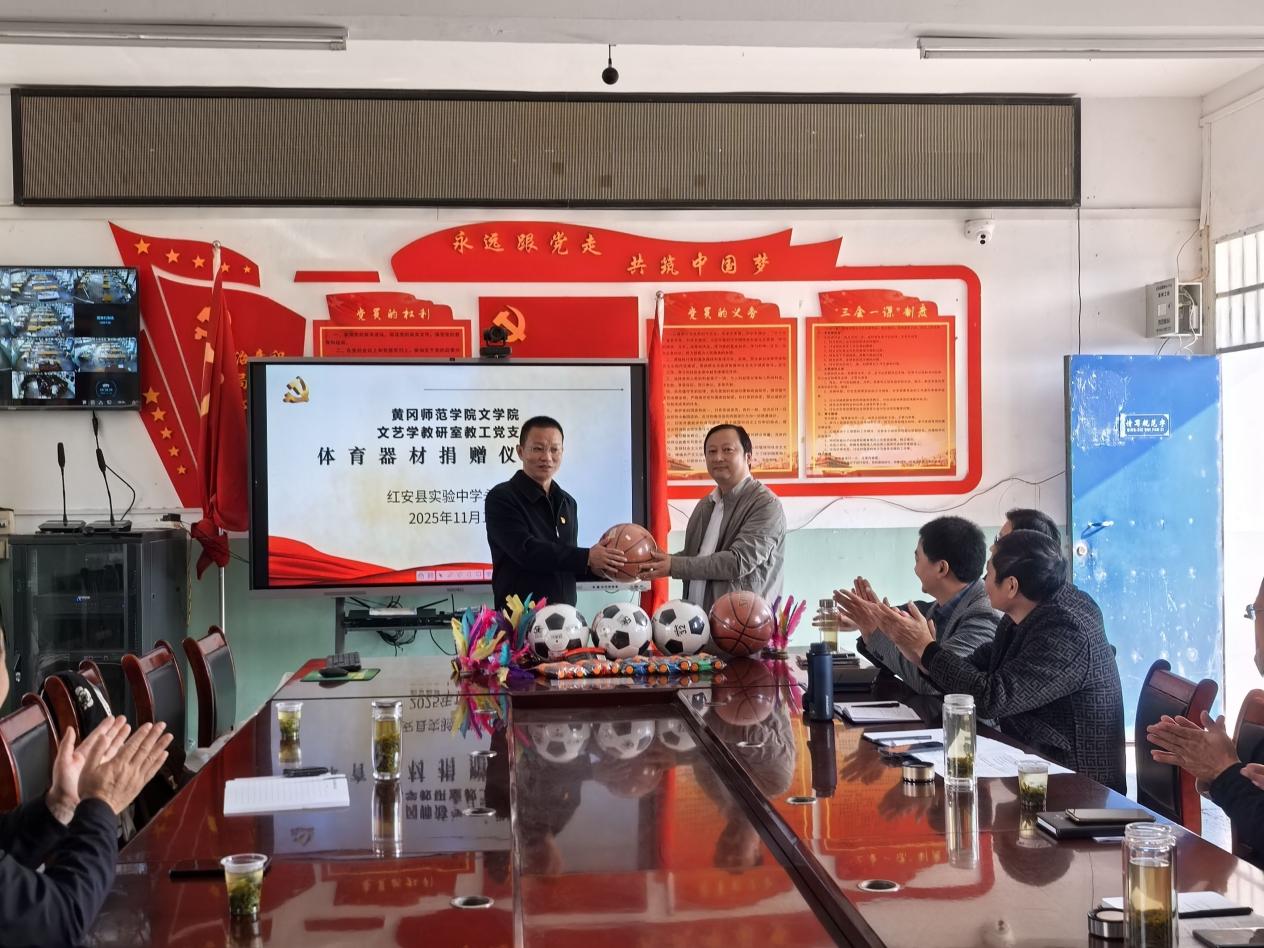文脉赓续固根基,教育赋能绘新景。为深入贯彻落实党的二十届四中全会精神,积极响应国家乡村振兴战略,共同探索乡村教育振兴与高校育人工作相结合的新路径,11月15日,william威廉亚洲党委组织“双带头人”教师党支部书记“强国行”专项行动团队文艺学教研室教工党支部赴红安县实验中学永河校区,与红安县实验中学永河校区党支部开展联合主题党日活动,举办教学讲座并进行教学研讨,向红安县实验中学永河校区捐赠体育器材,并开展红色文化考察学习活动。
