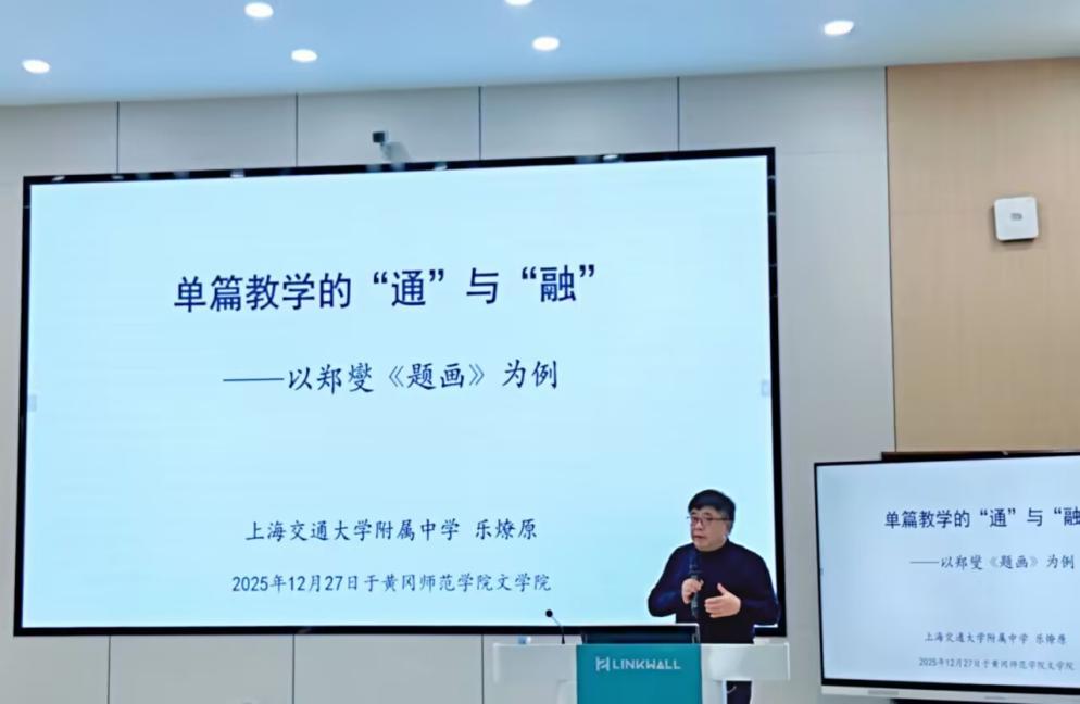 为进一步深化公司员工对语文单篇教学的本质认知,探索核心素养导向下的课堂创新实践路径,11月27日下午,公司杰出员工、国家“万人计划”教学名师、上海交通大学附属中学正高级教师乐燎原应邀回校,在北校区图书馆二楼报告厅作“单篇教学的‘通’与‘融’——以郑燮《题画》为例”专题讲座。本次讲座由william威廉亚洲副经理何荣誉主持,汤天勇教授以及2025级学科教学(语文)教育硕士研究生、部分本科生及教师代表参与并聆听讲座。
