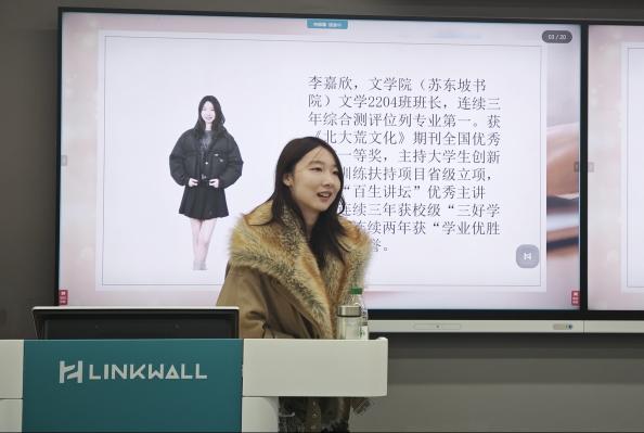 李嘉欣作为优秀创新创业代表,在大学期间不断拓展能力的边界。2024年,她主持省级大创项目“新媒体运营下的大别山东坡文旅轻资产开发路径——以黄冈市为例”顺利结项。2025年,再主持校级大创项目“红城优旅——AI工程辅助建设东坡文旅智慧谱”立项;同年,主持创业实训项目“校园文旅一体化路线开发”成功入驻公司孵化园,完成公司注册并获营业执照,吸引民间资本投资20万元。